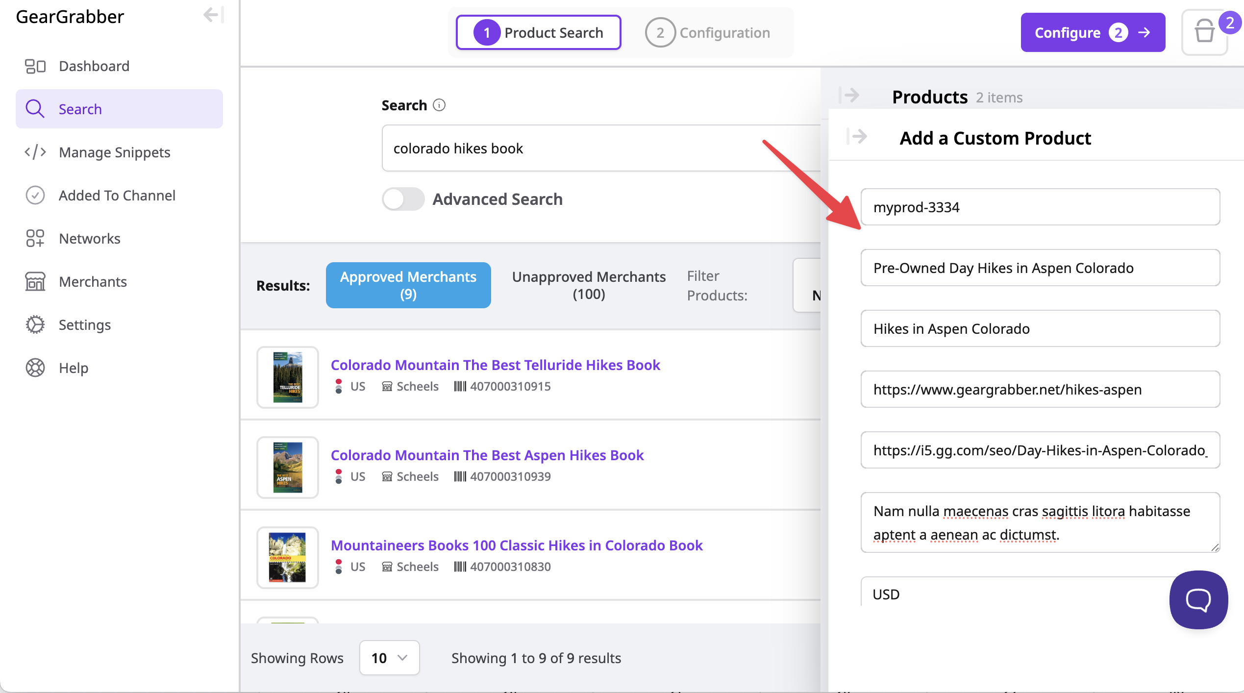 If you have already created Custom Products, you can quickly access them during the Snippet creation process.