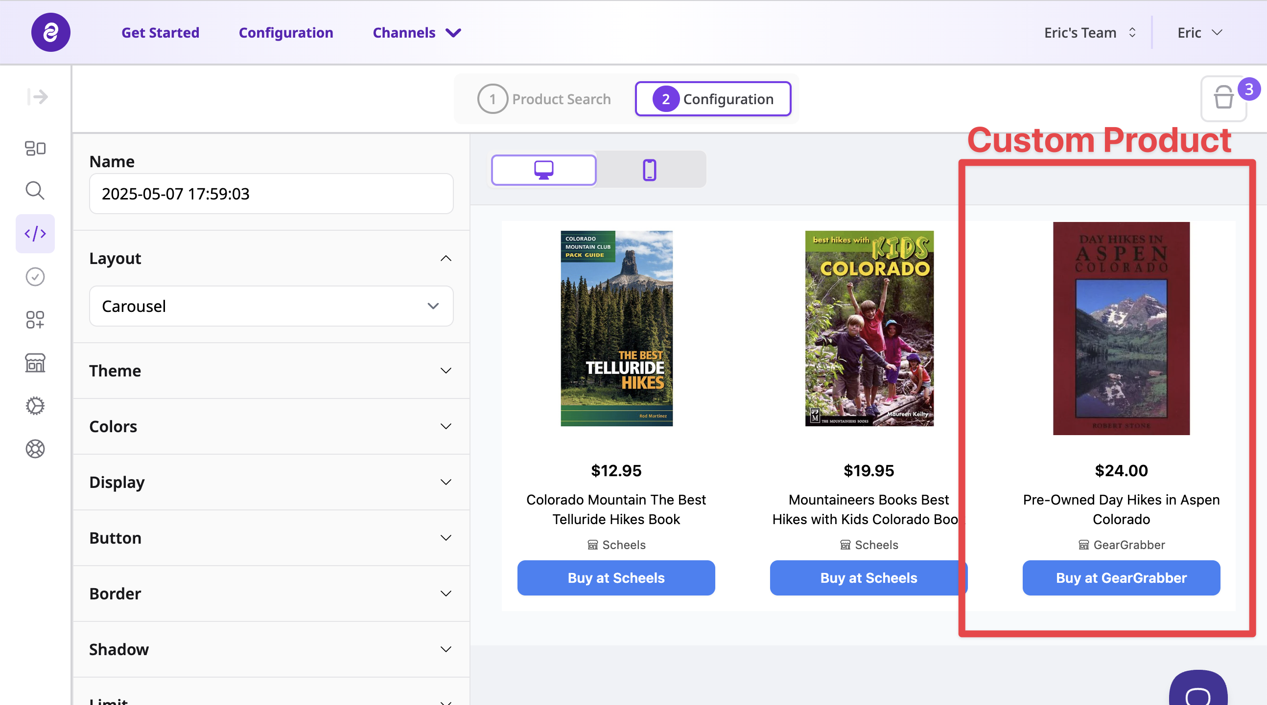 If you have already created a Custom Product in the interface above or in another Snippet, you can easily add those Custom Products to a Snippet.